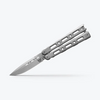 Designed for flippers that prefer a smaller frame, the new 82 Laro™ is a mid-size Bali-Song—a scaled-down version of our full-size 85 Ti Bali-Song. More EDC friendly with a 3.6” SelectEdge® CPM-MagnaCut premium stainless steel blade with a Stonewash finish and a sleek recurved drop-point blade profile, the Laro™ features thrust bearing pivots for fast and fluid rotation, plus handles milled from single-billet titanium for stereo precision. A magnetic latch lock keeps the latch out of the way during handle manipulation. When you’re not swinging, utilize the black Boltaron sheath with a pocket clip for easy daily carry.
