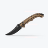 The 865BK-01 Mini Bedlam® is a fierce-looking tactical folder, pared-down in size for more practical daily carry while keeping the tactical look and feel of its full-size counterpart. Boasting premium CPM-S90V blade steel with a graphite Cerakote® finish, the upswept scimitar blade shape is optimized for hooking and slicing. The coyote/black/OD green layered G10 handle, designed for a strong and secure hold for bigger cutting tasks and quick movements, is aggressively textured with detailed milling, serrations, and a chamfered backspacer, providing a unique and superior grip texture that flows with the curvature of the handle.