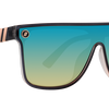 Dueling tones and finishes define the progressive style of 'Night City.' These flat top sunglasses are glossy on their interior and matte on their exterior, and the colorway is characterized by slate and champagne hues. A polarized aqua lens with a rainbow effect is the exclamation point on a bold yet sophisticated look. //