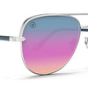Life’s about embracing the unknown, and 'Planet Nine' with its polarized icy blue lenses help you explore everything this world holds. The look is true to the name, with a boundary-pushing colorway swirling with the allure of some far-off nebula. Black, plum, pink, and pale blue hues shimmer and shift into each other on a gradient across the frame and temples, and the acetate ear tips boast a glossy multi-colored pattern that stirs the imagination. 'Planet Nine' sets style to warp speed and never looks back.